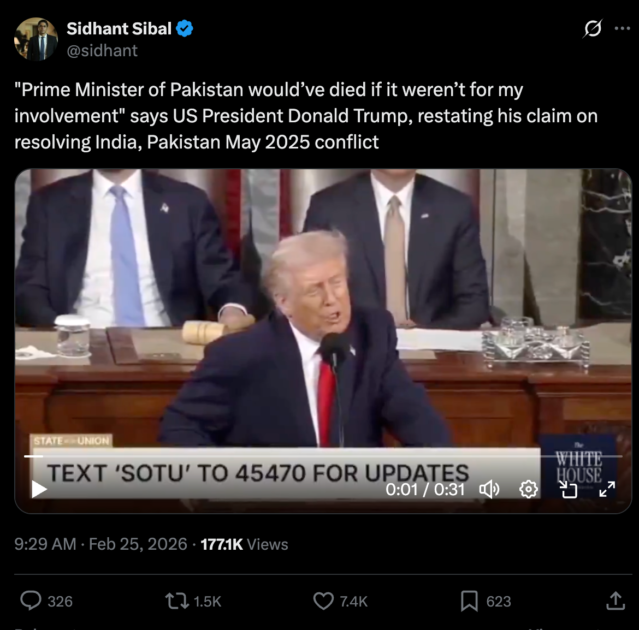 امریکی صدر ڈونلڈ ٹرمپ کے یونین آف اسٹیٹ خطاب کے بعد انڈین سوشل میڈیا پر پاکستانی وزیراعظم شہباز شریف کا ذکر غیر متوقع طور پر موضوعِ بحث بن گیا۔